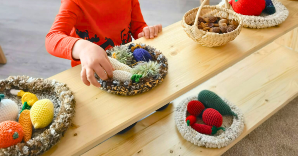 Creați un mediu acasă simplu și natural, cu materiale naturale și non-toxice. Lemnul, lâna, bumbacul și alte materiale organice încurajează simțurile și creativitatea copiilor.