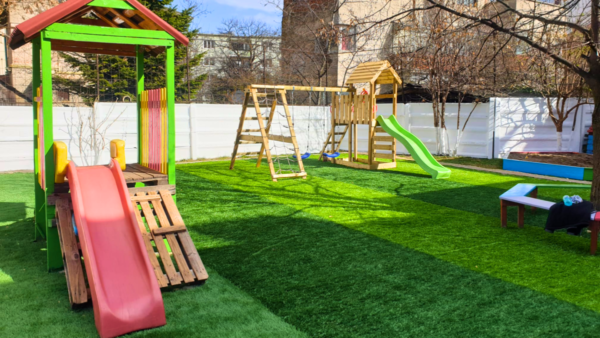 O parte esențială a unei grădinițe Waldorf este spațiul exterior. Copiii au acces la o curte frumoasă și sigură, unde pot explora natura, pot să se joace în aer liber și pot lua contact cu plantele și chiar viețuitoarele din zonă. Grădinile și spațiile verzi oferă o oportunitate extraordinară de învățare și dezvoltare în contact cu natura, iar în general sunt simple și accesibile.